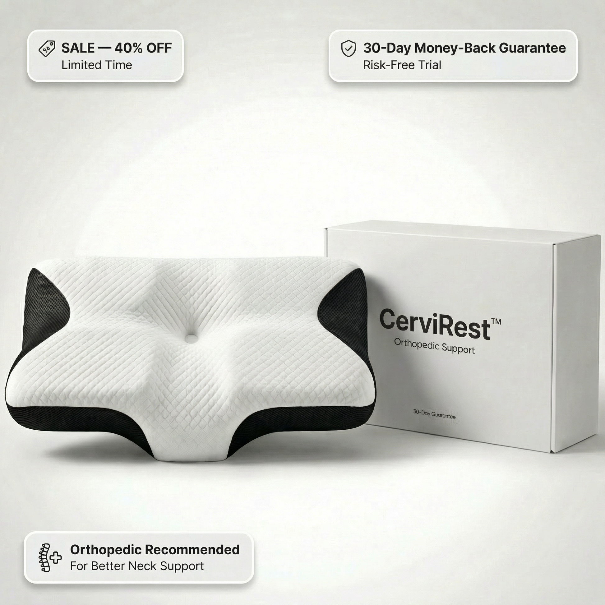 Die meisten Kissen geben nach oder liegen zu hoch – CerviRest™ stützt Ihren Nacken und hilft, Ihre Wirbelsäule die ganze Nacht über in der richtigen Position zu halten.